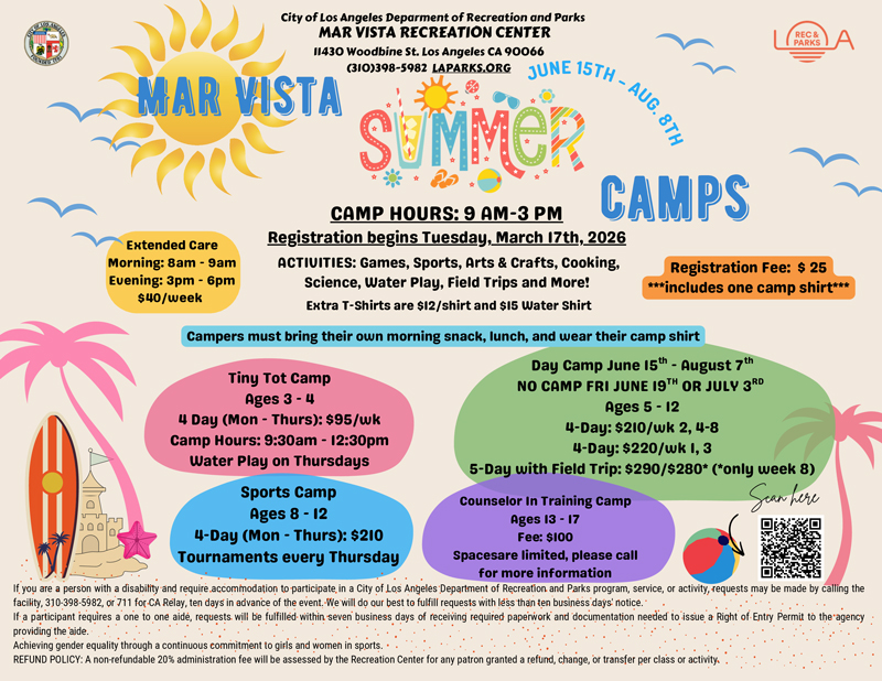 Mar Vista Rec Center has some great ways to keep your kids busy this summer!