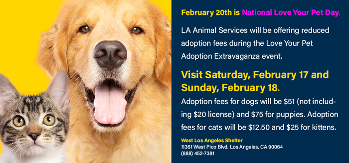 LA Animal Services will be offering reduced adoption fees during the Love Your Pet