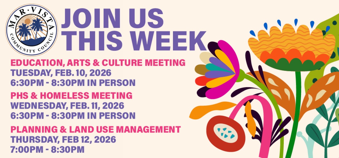 This includes some busy streets in the Mar Vista Community Council area. Drive defensively. Drive safely!