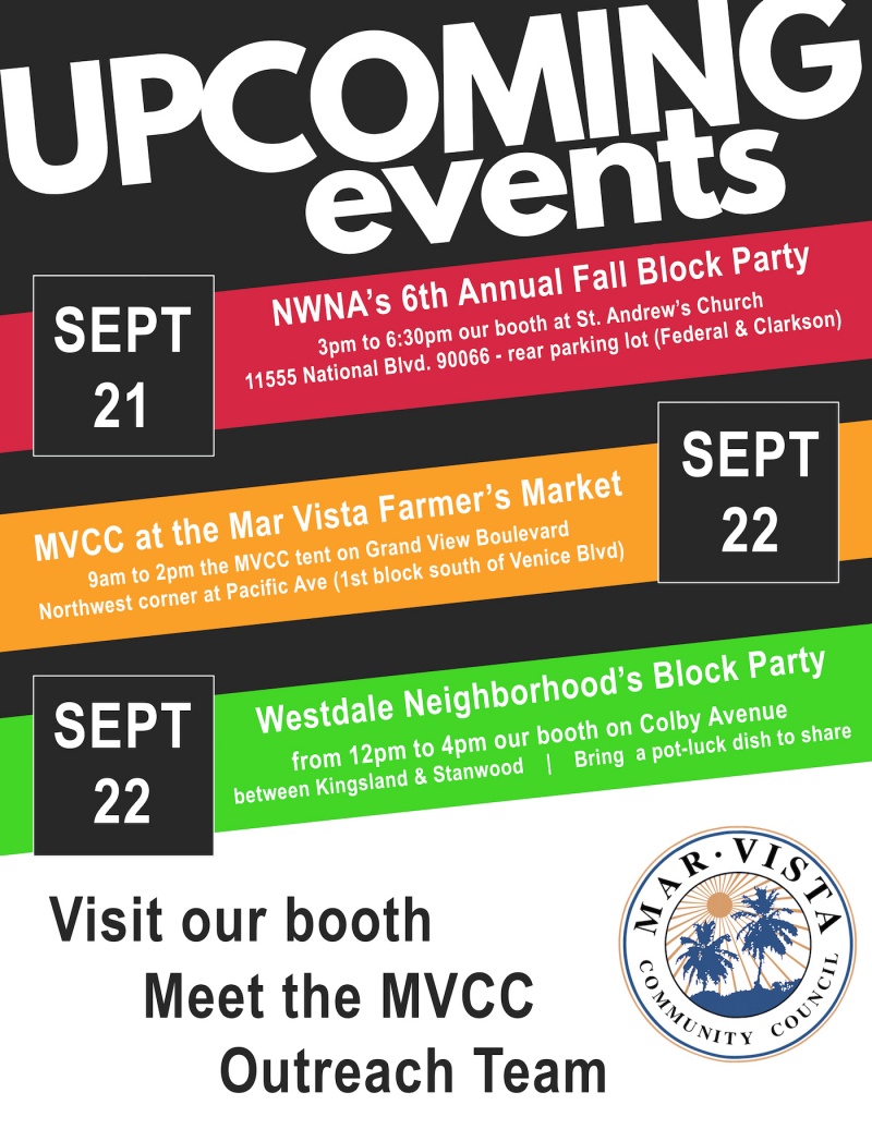 Also, we'll be in our tent at the Mar Vista Farmer's Market.